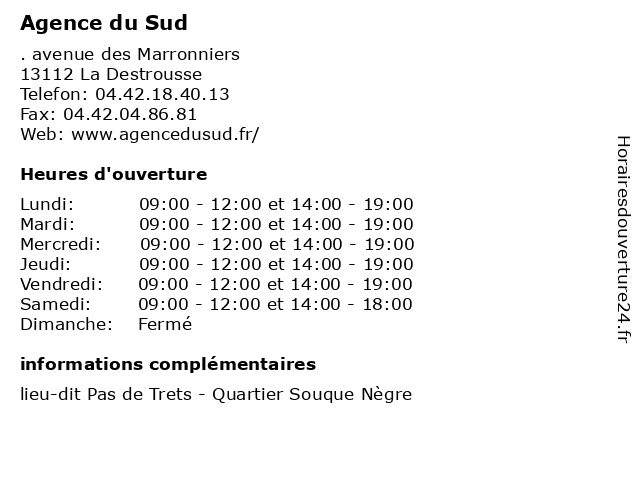 1 Agence du Sud (Distance: 1,77 km) 4 avenue de Valdonne, 13124 Peypin agence, appartement, du, gestion, immobilier, location, maison, sud, transaction, vente 2 Agence du Sud (Distance: 3,38 km) 4 quai de l'Huveaune, 13390 Auriol agence, appartement, du, gestion, immobilier, location, maison, sud, transaction, vente 3 Agence du Sud (Distance: 4,32 km) 1 boulevard Piot, 13360 Roquevaire agence, appartement, du, gestion, immobilier, location, maison, sud, transaction, vente 4 Agence du Sud (Distance: 11,02 km) 71 rue de la République, 13400 Aubagne agence, du, gestion, immobilier, location, sud, transaction, vente 5 Agence du Sud (Distance: 15,65 km) . route de Cassis, 13470 Carnoux en Provence agence, appartement, du, gestion, immobilier, location, maison, sud, transaction, vente 6 Agence du Sud (Distance: 19,80 km) 9 rue Brémond, 13260 Cassis agence, appartement, du, gestion, immobilier, location, maison, sud, transaction, vente |