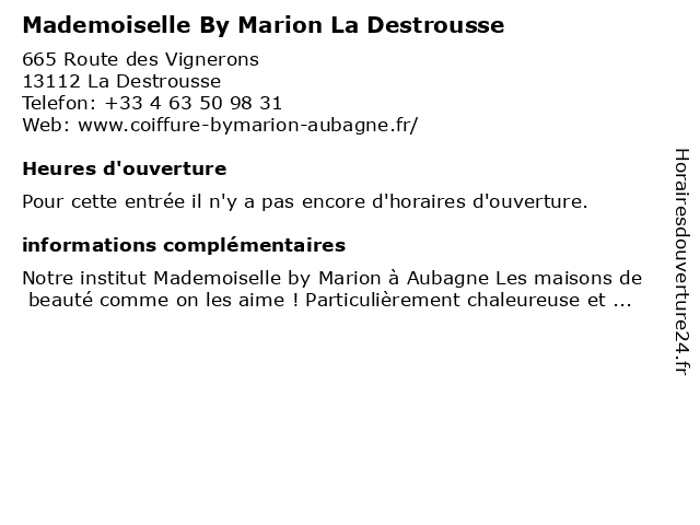 | Appeler Mademoiselle By Marion La Destrousse | |
