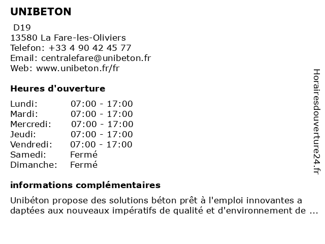 5 UNIBETON (Distance: 39,21 km) Avenue Mirabeau, 13530 Trets unibeton