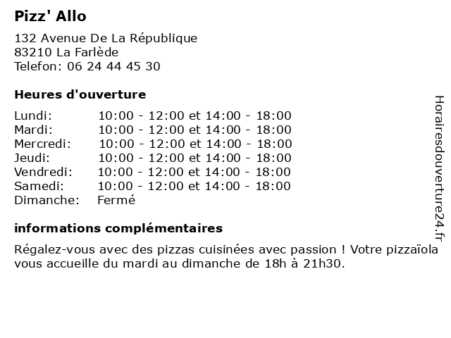 | Mardi | 10:00-12:00 et 14:00-18:00 |