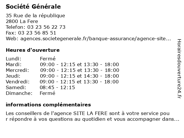 | Dimanche | Fermé |
