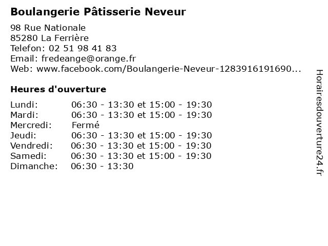 Termes de recherche pour Boulangerie Pâtisserie Neveur:la, ferriere, alimentation, commerce, boulangerie, pain, gateaux, pâtisserie, baguette, neveur |