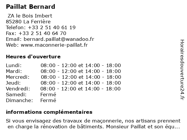 | Samedi | Fermé |