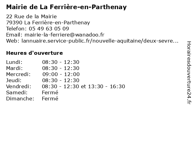 Termes de recherche pour Mairie de La Ferrière-en-Parthenay:en, la, de, ferriere, parthenay, administration, mairie, assoc public |