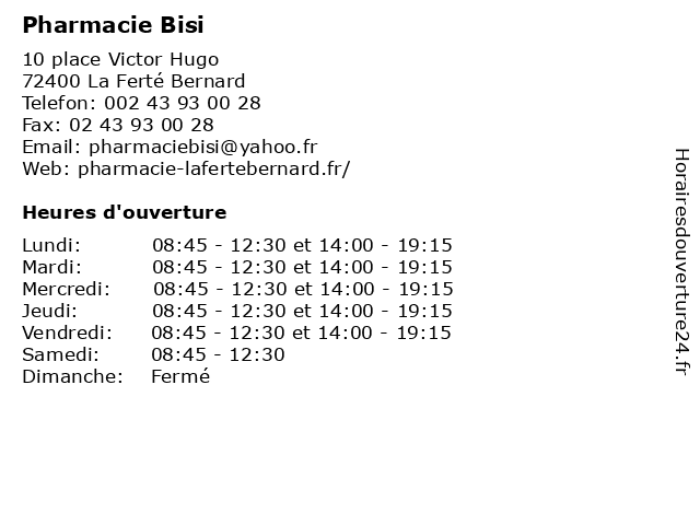 | Mardi | 08:45-12:30 et 14:00-19:15 |