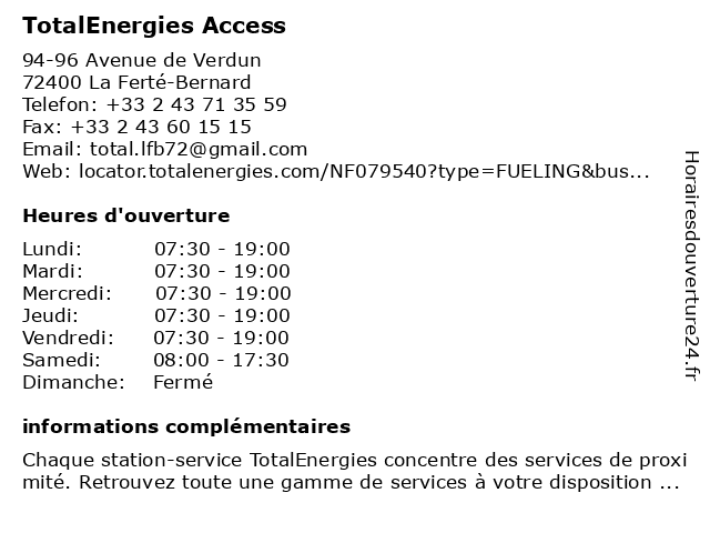 | Lundi | 07:30-19:00 |