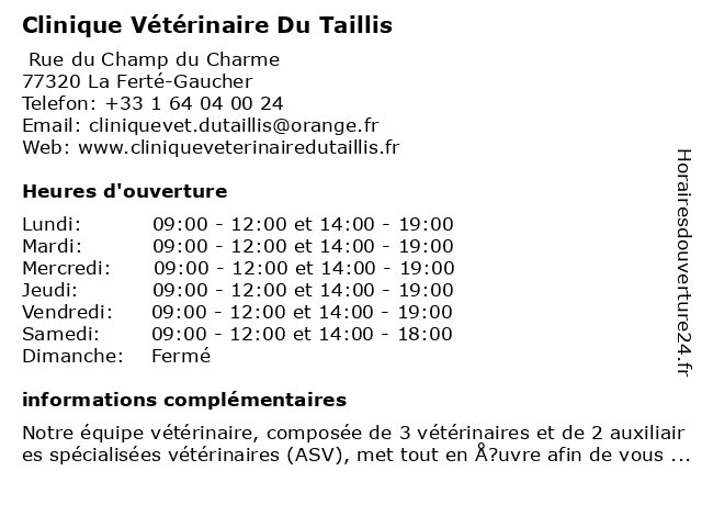 | Mardi | 09:00-12:00 et 14:00-19:00 |
