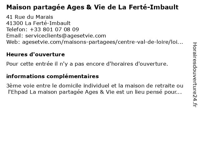 | Appeler Maison partagée Ages & Vie de La Ferté-Imbault | |