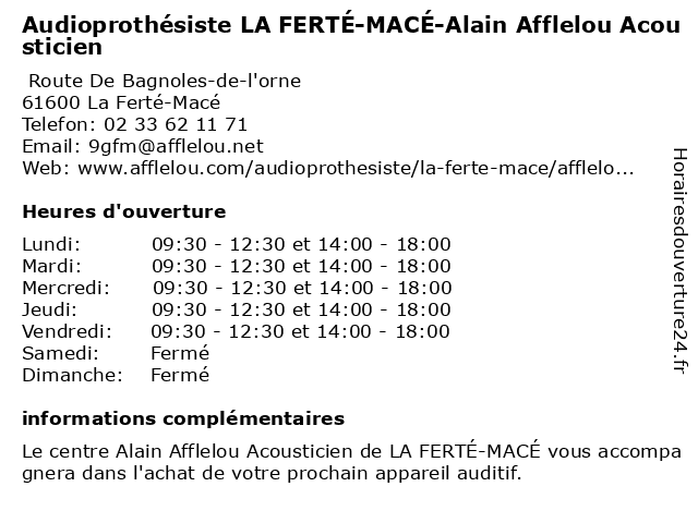 Termes de recherche pour Audioprothésiste LA FERTÉ-MACÉ-Alain Afflelou Acousticien:la, ferte, mace, alain, afflelou, acousticien, audioprothésiste, audiologie, clinique médicale |