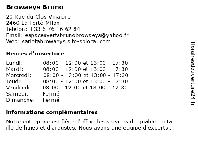 Lundi | 08:00-12:00 et 13:00-17:30 |