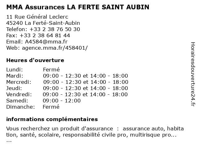 1 Auchan Supermarché La Ferte St-Aubin (Distance: 0,86 km) 122 Avenue Du Général Leclerc, 45240 LA FERTÉ-SAINT-AUBIN aubin, auchan, ferte, la, st, supermarché 2 Thélem Assurances (Distance: 0,99 km) 159 RUE DU GENERAL LECLERC, 45240 La Ferte Saint Aubin assurances, car insurance, home insurance, legal insurance, provident insurance, school insurance, thélem 3 Thelem Assurances (Distance: 0,99 km) 159 rue du general leclerc, 45240 La Ferté-Saint-Aubin agence, assurance, assurances, aubin, ferté, la, st, thelem 4 Mr.Bricolage Relais La Ferte St Aubin (Distance: 1,93 km) 309 Rue Général Leclerc, 45240 La Ferté-Saint-Aubin aubin, ferte, la, mr.bricolage, relais, st 5 Tout Faire Materiaux La Ferte St Aubin (Distance: 1,94 km) 55 Rue Basse, 45240 La Ferté-Saint-Aubin aubin, faire, ferte, la, materiaux, st, tout 6 Esso La Ferte Saint Aubin (Distance: 6,64 km) - A71 - Aire de Chaumont sur Tharonne, 41600 Chaumont sur Tharonne aubin, carburant, esso, ferte, la, saint, services, station, véhicules |