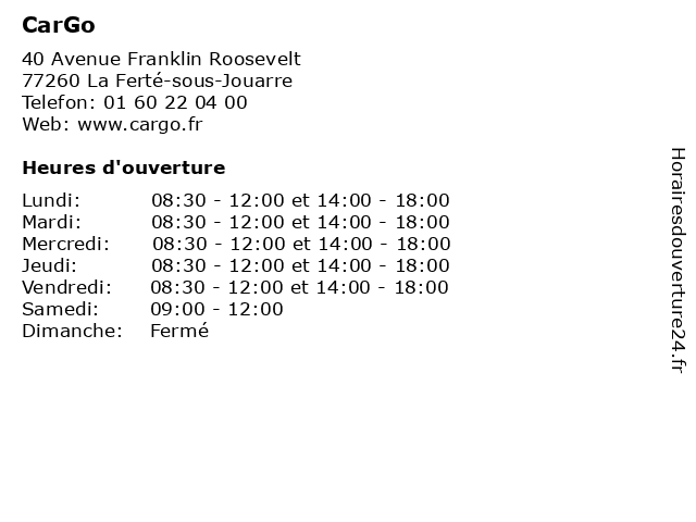 | Lundi | 08:30-12:00 et 14:00-18:00 |