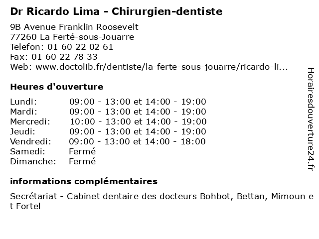 | Lundi | 09:00-13:00 et 14:00-19:00 |