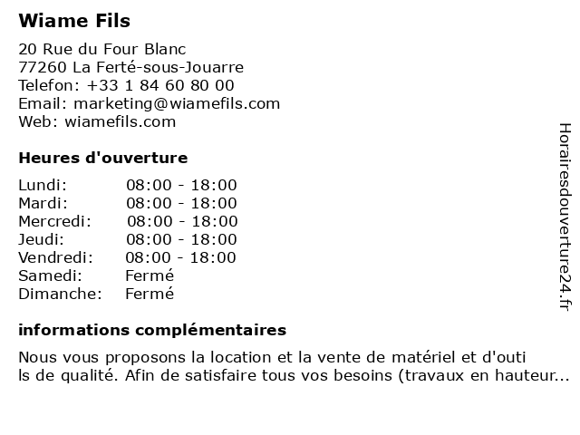 | Samedi | Fermé |