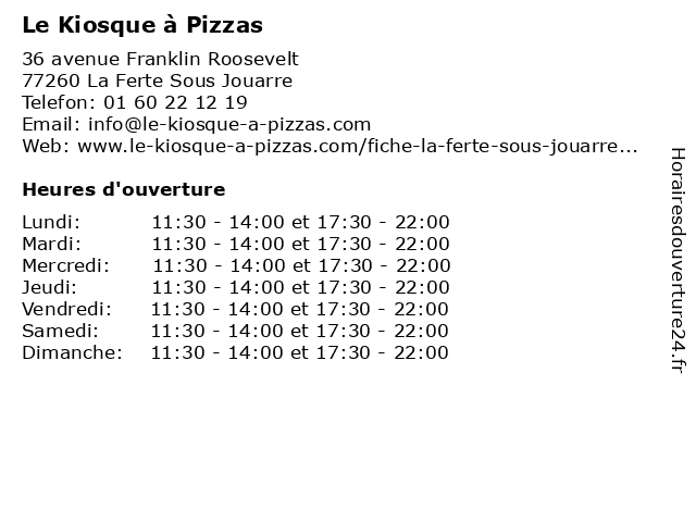 | Mercredi | 11:30-14:00 et 17:30-22:00 |