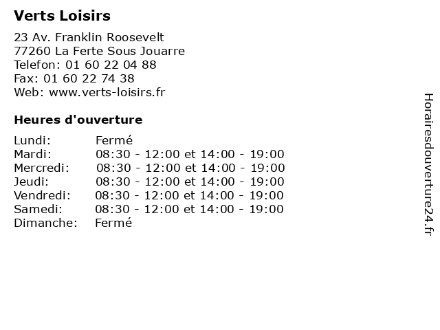 | Mardi | 08:30-12:00 et 14:00-19:00 |