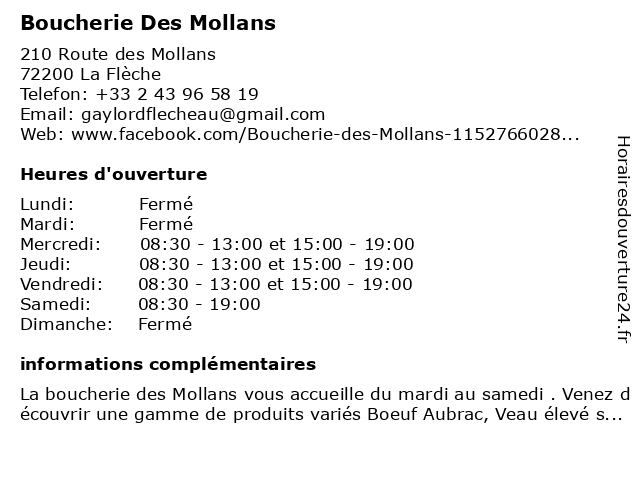 | Mercredi | 08:30-13:00 et 15:00-19:00 |