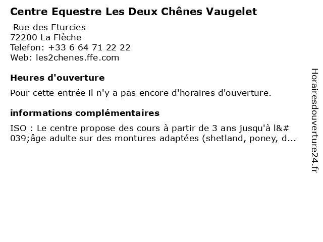 | Appeler Centre Equestre Les Deux Chênes Vaugelet | |