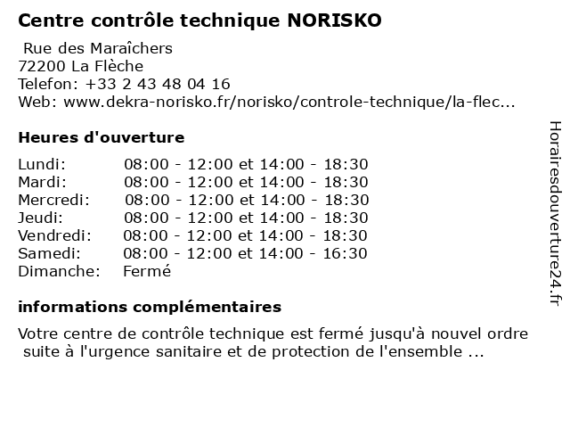 Description de l'entreprise :Préparer votre contrôle techniquePour préparer votre contrôle technique dans notre centre NORISKO de La Flèche, vous pouvez vérifier en amont différents points comme les pneumatiques, la visibilité, le niveau d'huile ou encore l'habitacle. Pour tout savoir, consultez notre vidéo. Voir l'offre |