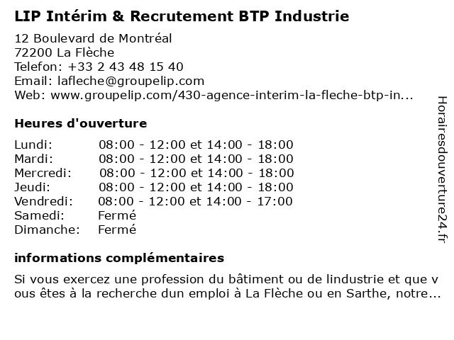 | Lundi | 08:00-12:00 et 14:00-18:00 |