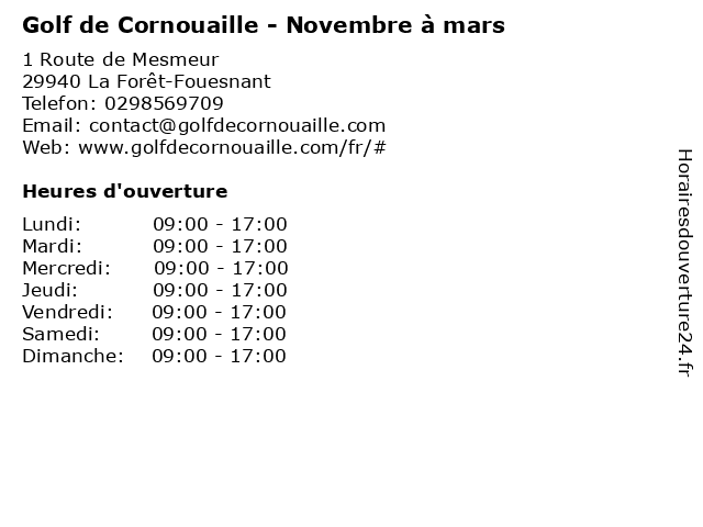 | Lundi | 09:00-17:00 |