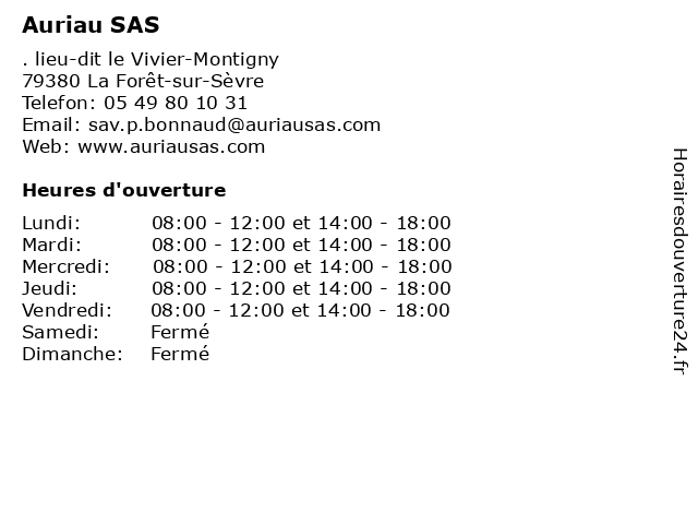 | Samedi | Fermé |