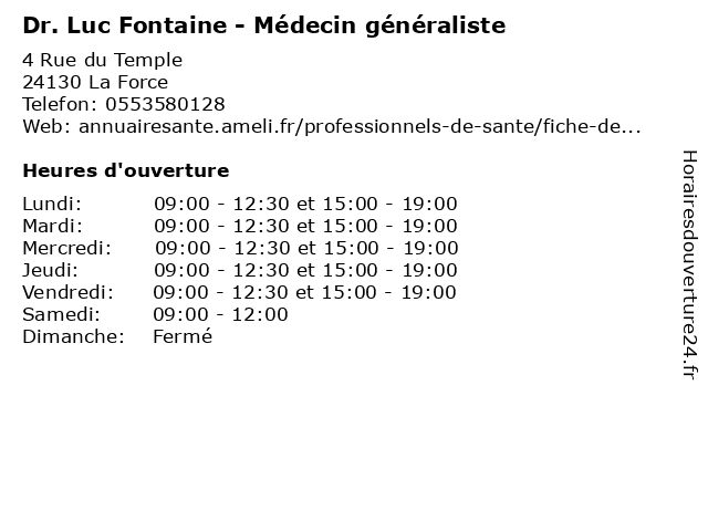 | Vendredi | 09:00-12:30 et 15:00-19:00 |