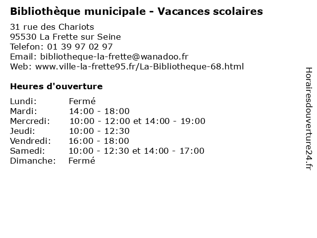 | Mercredi | 10:00-12:00 et 14:00-19:00 |