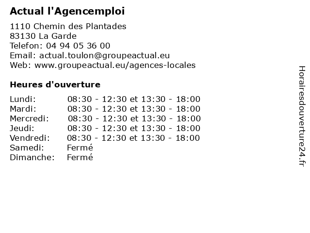 | Lundi | 08:30-12:30 et 13:30-18:00 |