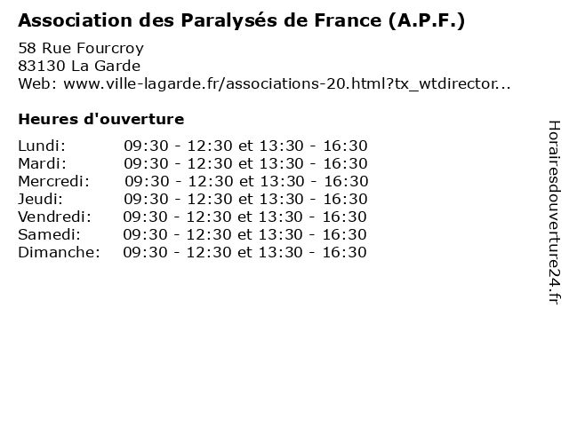 | Mardi | 09:30-12:30 et 13:30-16:30 |