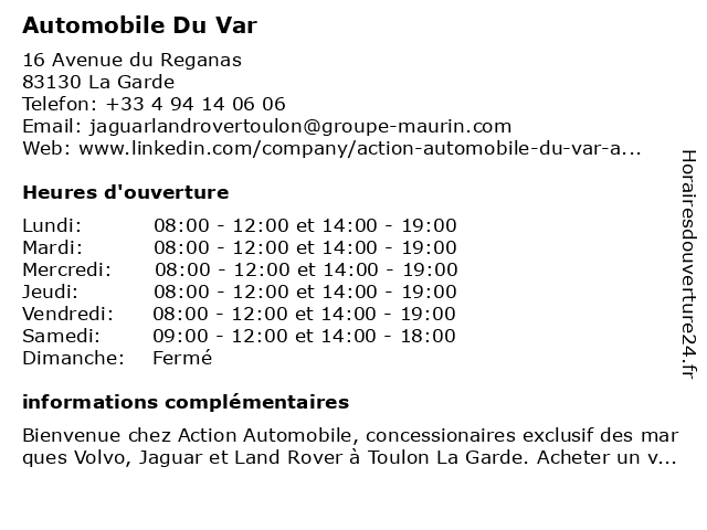 | Lundi | 08:00-12:00 et 14:00-19:00 |