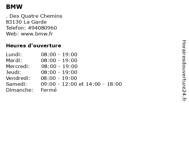 1 BMW (Distance: 18,47 km) . Avenue Jean Mermoz, 83190 Ollioules automobiles, bmw, concéssionnaire, garage, motos 2 BMW (Service Commercial) (Distance: 0,00 km) . Des Quatre Chemins, 83130 La Garde automobiles, bmw, commercial, concéssionnaire, garage, motos, service 3 BMW (Vente) (Distance: 18,47 km) . Avenue Jean Mermoz, 83190 Ollioules automobiles, bmw, concéssionnaire, garage, motos, vente 4 GRAND SUD AUTO BMW (Distance: 53,66 km) 3 A 5 BOULEVARD RABATAU, 13008 MARSEILLE accessoires de voiture, auto, bmw, grand, moteur, roue, sud, une boutique de voiture, voitures 5 L'Agence Automobilière de Marseille Sud (Distance: 56,42 km) 27 Rue du Coteau, 13007 Marseille acheter voiture, agence automobilière, automobilière, de, entre particuliers, l'agence, mandataire marseille, marseille, occasion audi, occasion bmw, occasion citroen, occasion dacia, occasion fiat, occasion marseille, occasion mercedes, occasion peugeot, occasion renault, occasion toyota, occasion volkswagen, occasions, sud, trouver voiture occasion, vendre voiture, voiture, voiture occasion marseille 6 STATION 7 BMW (Distance: 56,54 km) 83 boulevard de Paris, 13002 MARSEILLE accessoires de voiture, bmw, moteur, roue, station, une boutique de voiture, voitures |