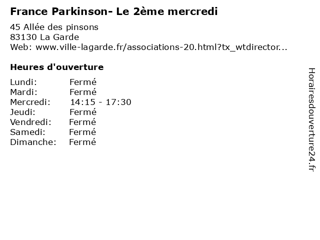 Termes de recherche pour France Parkinson- Le 2ème mercredi:le, services, france, mercredi, public, 2ème, parkinson |