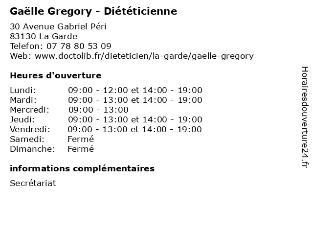 | Lundi | 09:00-12:00 et 14:00-19:00 |