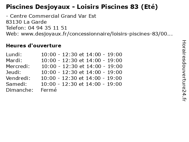 | Samedi | 10:00-12:30 et 14:00-19:00 |