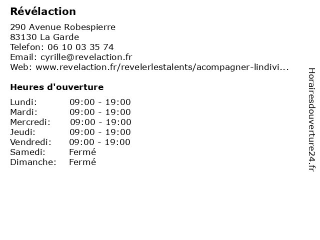 | Lundi | 09:00-19:00 |