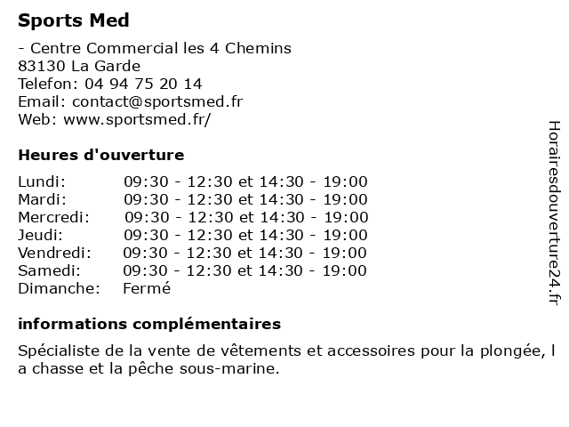 | Lundi | 09:30-12:30 et 14:30-19:00 |