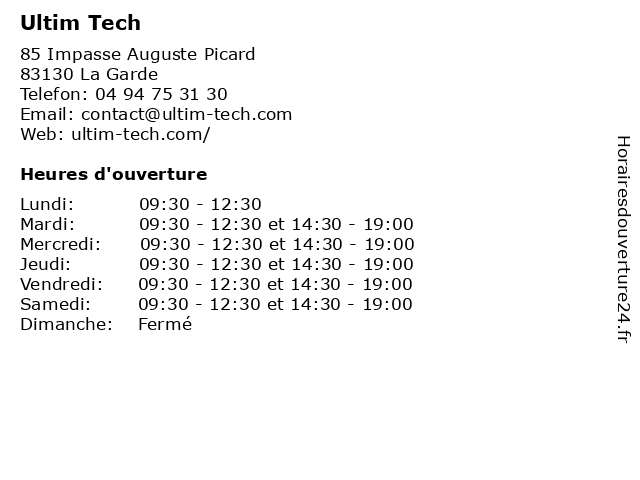 Samedi | 09:30-12:30 et 14:30-19:00 |