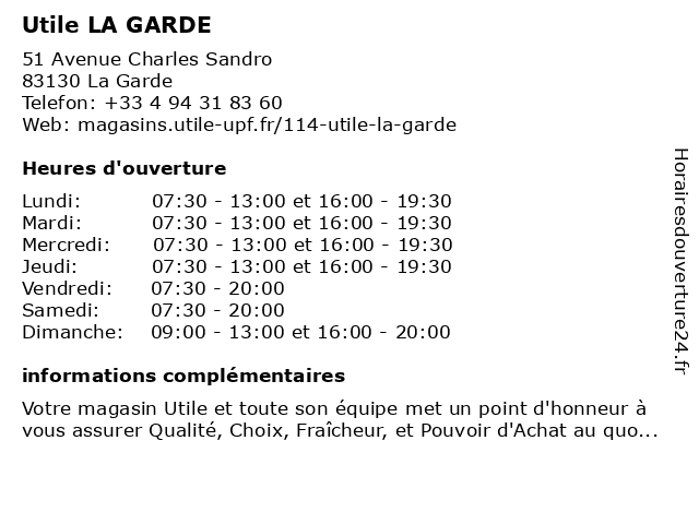 1 Utile LA VALETTE-DU-VAR (Distance: 2,30 km) Avenue Aristide Briand, 83160 La Valette-du-Var du, la, utile, valette, var 2 Utile TOULON La Palasse (Distance: 3,03 km) 1628 Avenue Joseph Gasquet, 83100 Toulon la, palasse, toulon, utile 6 |