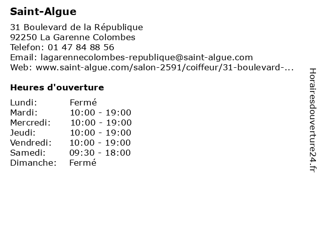 1 Saint-Algue (Distance: 0,00 km) 31 Boulevard de la République, 92250 La Garenne Colombes algue, coiffeur, coiffure, saint, salon 2 Saint-Algue (Distance: 8,71 km) 81 Rue Yves Kermen, 92100 Boulogne-Billancourt algue, coiffeur, coiffure, saint, salon 3 Saint Algue (Distance: 2,29 km) 47 Terrasse de l'Arche, 92000 Nanterre algue, beaute, coiffeurs visagistes, coiffure, saint, soleil 4 Saint Algue (Distance: 3,13 km) 50 Rue Voltaire, 92300 Levallois Perret algue, beaute, coiffeurs visagistes, coiffure, saint, soleil 5 Saint Algue (Distance: 11,21 km) 173 Avenue de Paris, 92320 Chatillon algue, beaute, coiffeurs visagistes, coiffure, saint, soleil 6 Saint Algue (Distance: 12,66 km) 200 Avenue de la Division Leclerc, 95200 Sarcelles accessories, algue, beaute, bijoux, chaussures, enfant, mode femme, mode homme, restaurants, saint, services, sport |