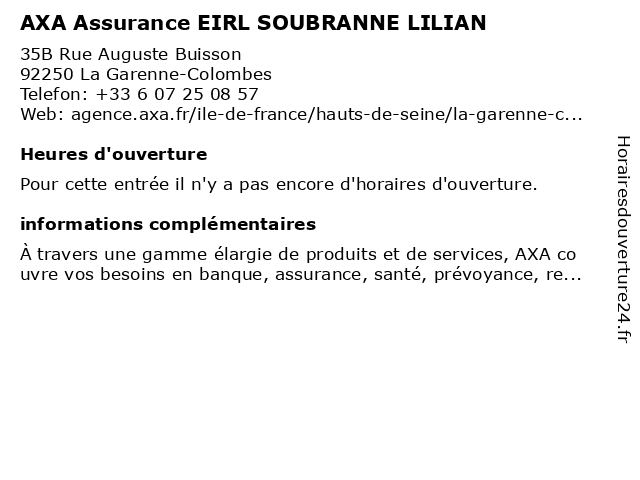 | Appeler AXA Assurance EIRL SOUBRANNE LILIAN | |