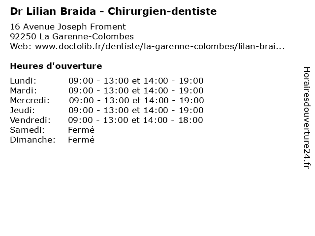 | Lundi | 09:00-13:00 et 14:00-19:00 |