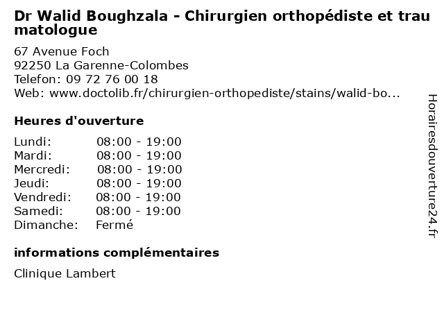 1 Dr Walid Boughzala - Chirurgien orthopédiste et traumatologue (Distance: 10,76 km) 35 Rue d'Amiens, 93240 Stains boughzala, chirurgien, docteur, dr, et, orthopédiste, sante, soins, traumatologue, walid 2 Dr Mayalen Lamerain - Chirurgien orthopédiste et traumatologue (Distance: 0,91 km) 63 Avenue Foch, 92250 La Garenne-Colombes chirurgien, dr, et, lamerain, mayalen, orthopédiste, traumatologue 3 Dr Julien Beldame - Chirurgien orthopédiste et traumatologue (Distance: 0,96 km) 67 Avenue Foch, 92250 La Garenne-Colombes beldame, chirurgien, dr, et, julien, orthopédiste, traumatologue 4 Dr Abdellah Hilaneh - Chirurgien orthopédiste et traumatologue (Distance: 0,96 km) 67 Avenue Foch, 92250 La Garenne-Colombes abdellah, chirurgien, consultation, docteur, dr, et, hilaneh, med, médecin, médecine, orthopédiste, traitement, traumatologue 5 Dr Kamal Haoudi - Chirurgien orthopédiste et traumatologue (Distance: 0,96 km) 67 Avenue Foch, 92250 La Garenne-Colombes chirurgien, consultation, docteur, dr, et, haoudi, kamal, med, médecin, médecine, orthopédiste, traitement, traumatologue 6 Olivier Lemiere - Orthopédiste-orthésiste (Distance: 1,34 km) 66 Rue du Bournard, 92700 Colombes lemiere, olivier, orthopédiste, orthésiste, pedicure, pied, podologue, sante |