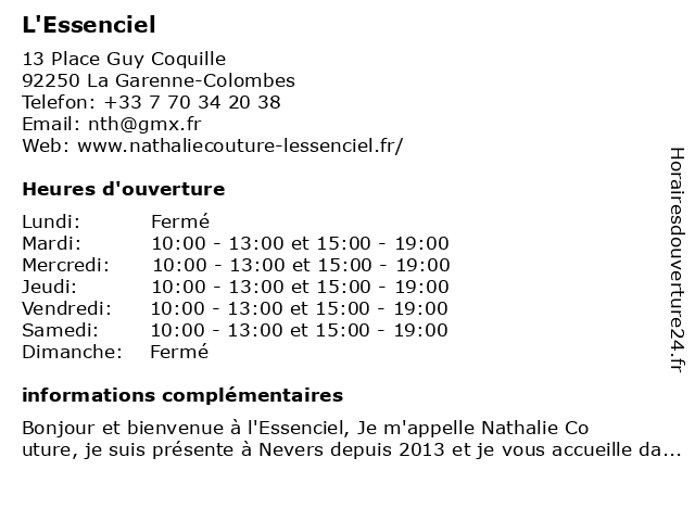 Bonjour et bienvenue à l'Essenciel, Je m'appelle Nathalie Couture, je suis présente à Nevers depuis 2013 et je vous accueille dans ma boutique, 46 avenue du Général de Gaulle à Nevers. J...