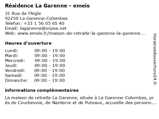 | Dimanche | 09:00-19:00 |