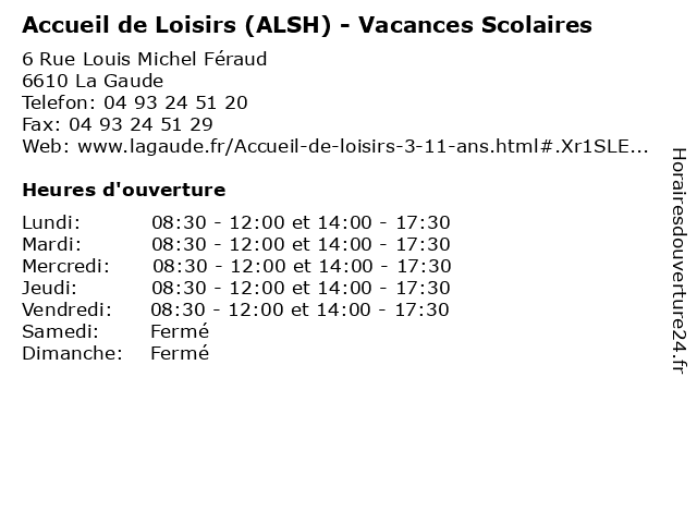 | Samedi | Fermé |
