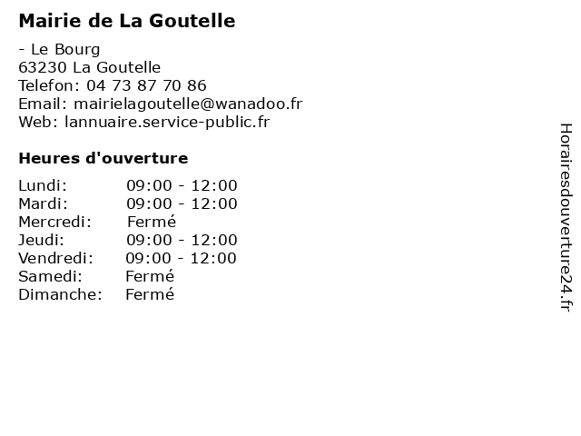 Termes de recherche pour Mairie de La Goutelle:la, de, administration, mairie, assoc public, goutelle |