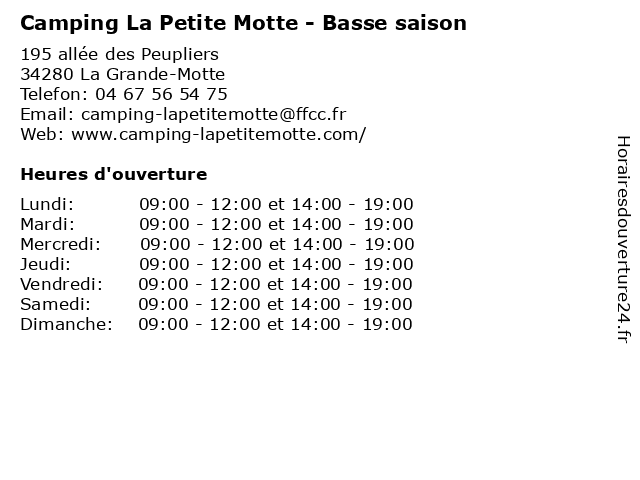 1 Camping La Petite Motte - Haute saison (Distance: 0,00 km) 195 allée des Peupliers, 34280 La Grande-Motte camping, haute, la, loisirs, motte, petite, réception, saison, tourisme, vacances 2 Camping L'or (Distance: 0,24 km) - Allée des Pins, 34280 La Grande Motte camping, hébergement, l'or, tourisme 3 Camping Le Boucanet (Distance: 2,95 km) - Route de Carnon, 30240 Le Grau du Roi boucanet, camping, hébergement, le, tourisme 4 Camping Le Boucanet - Restaurant/snack (avril à octobre) (Distance: 2,95 km) - Route de Carnon, 30240 Le Grau du Roi avril, boucanet, camping, hébergement, le, octobre, restaurant/snack, tourisme 5 Grand Café De Paris - basse saison (Distance: 5,91 km) 19 bis Quai Colbert, 30240 Le Grau-du-Roi basse, cafe, café, de, grand, jardelot, paris, restaurants, roc, saison 6 Camping Mille Pépites (Distance: 6,63 km) - Rue de l'Aigoual, 34280 Carnon camping, hébergement, mille, pépites, tourisme |