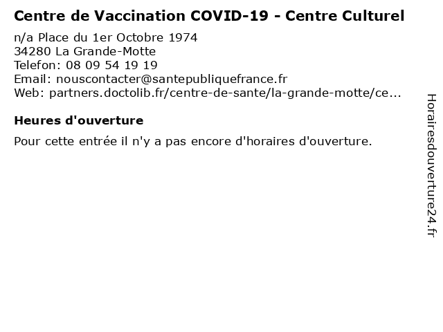 | Appeler Centre de Vaccination COVID-19 - Centre Culturel | |