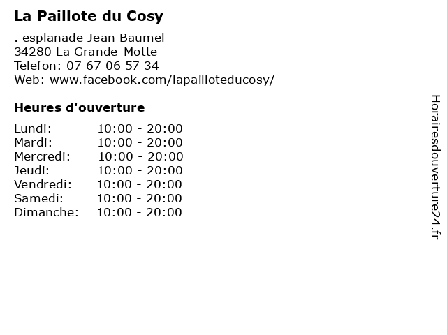 1 La Paillote Bambou - Plage (Distance: 2,09 km) n/c route des Plages, 34280 La Grande Motte activité, bambou, cocktails, la, paillote, plage, privé, restaurant, restauration 2 La Paillote Du Lagon (Distance: 6,30 km) 223 Route Des Marines, 30240 Le Grau Du Roi beach, lagon, paillote, restaurants, south 3 La Paillote (Distance: 11,89 km) Monsieur Patrice Bertana, 34250 Palavas Les Flots bertana, paillote, patrice, restaurants 4 la paillote à crêpes (Distance: 12,59 km) 69 Avenue de la Biste, 34670 Baillargues crêpes, la, paillote 5 Pizza Cosy (Distance: 14,95 km) 58 Avenue Marie de Montpellier, 34000 Montpellier cosy, emporter, livraison, pizza, pizzeria, place, qualité, restaurant, restauration, sur 6 Café Cosy (Distance: 15,03 km) 52 Rue de Syracuse, 34000 Montpellier cafe, café, cosy, cuisine, restaurants, restauration |
